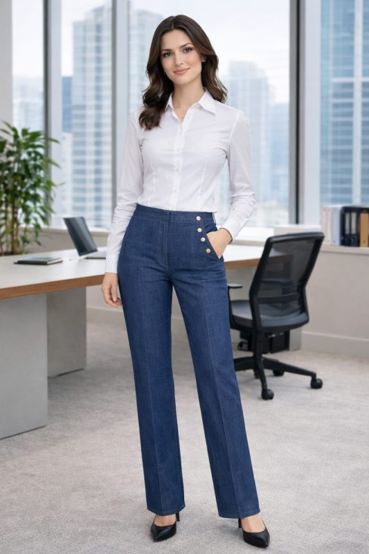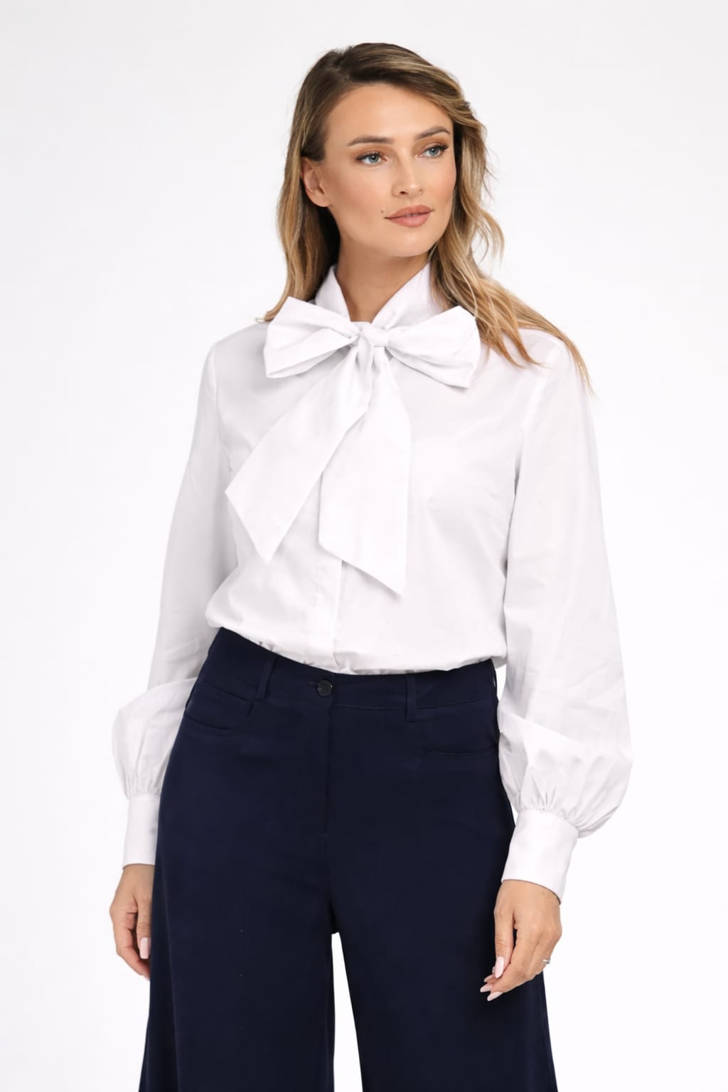 O camasa alba sau in nuante deschise este una dintre cele mai versatile piese din garderoba. Poate fi purtata cu pantaloni eleganti, cu fuste sau chiar cu jeansi pentru un look smart casual.