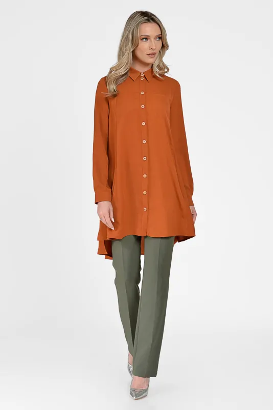 Helanca din lycra, versatila și comoda. Tesatura este fina, nuanța de portocaliu îți împrospătează tinuta și croiul drept avantajează orice silueta. Ideala alături de un sarafan negru cu decolteu adânc, helanca este un must have în sezonul rece.