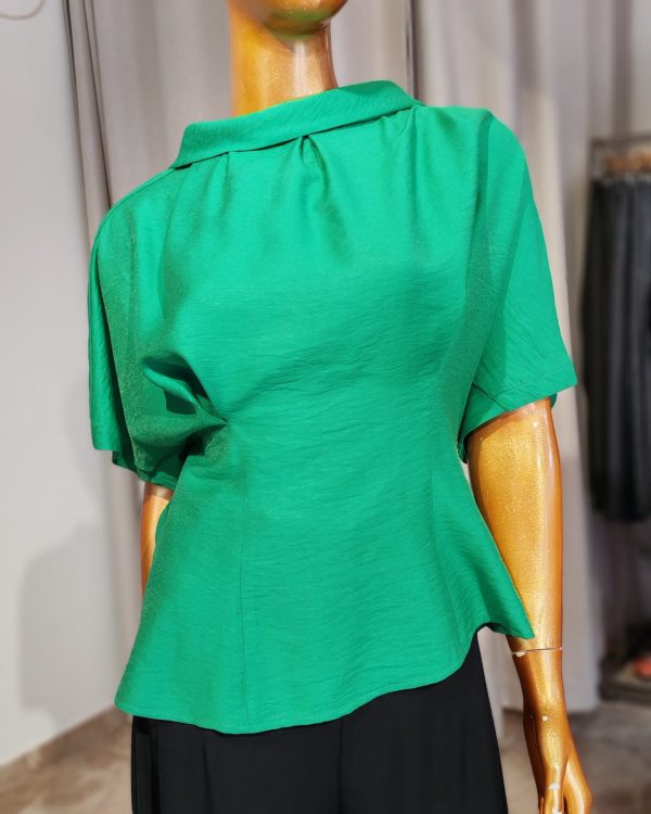 Bluza alba din voal cu volanase suprapuse. Croiul este lejer. Manecile sunt prevazute cu volanase. Bluza are decolteu rotund, cu despicatura. Este eleganta, vaporoasa, chic – ideala pentru o tinuta de vara.