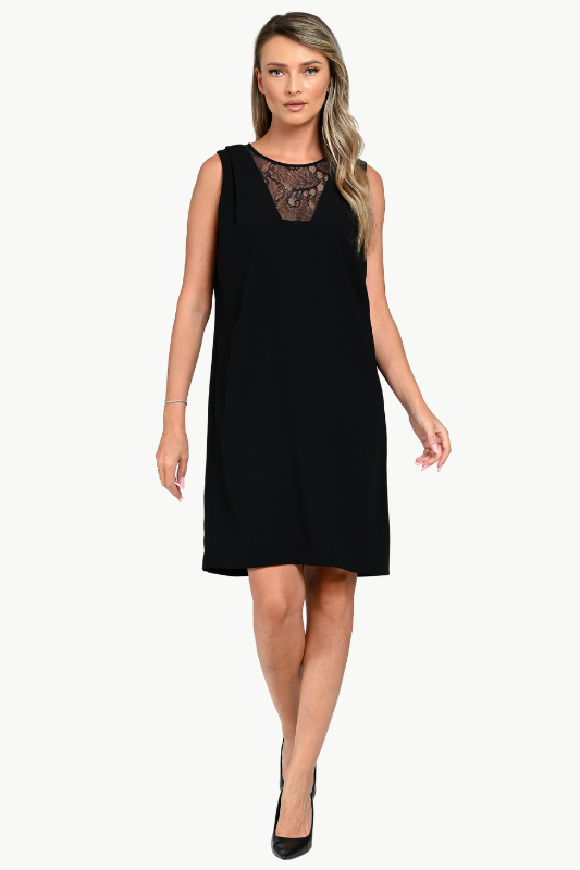 Rochie neagra GIORGAL cu dantela si pliuri ADELA