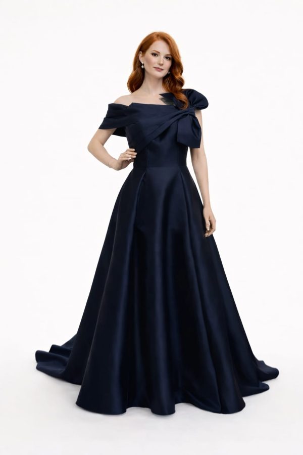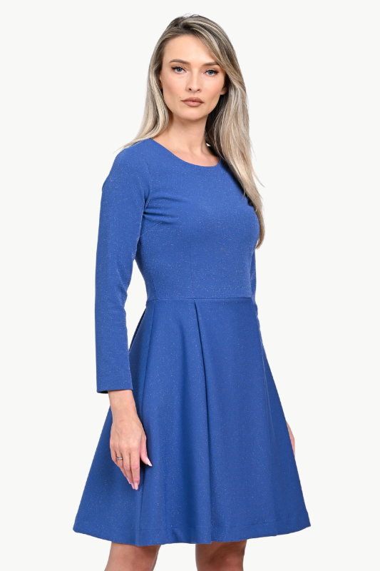 Rochie eleganta stralucitoare GIORGAL cu pliuri, albastra OFELIA