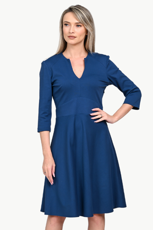 Rochie office GIORGAL din tricot, albastra OLIMPIA
