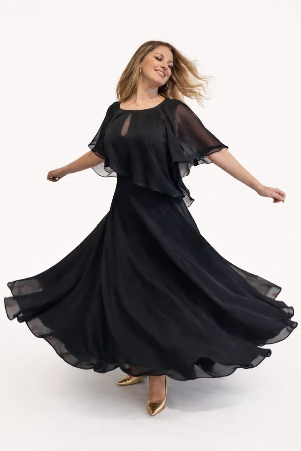 - Fusta rochiei este in A, prin suprapunere de tulle negru