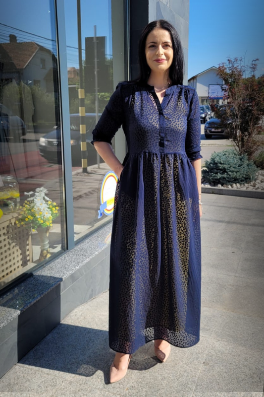 Rochie lunga din voal cu buline Giorgal bleumarin Ligias