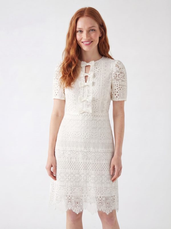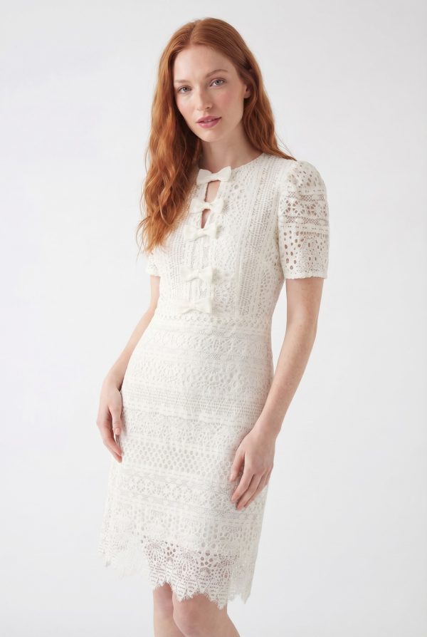 Rochie dantela cream GIORGAL cu fundite DANIELA