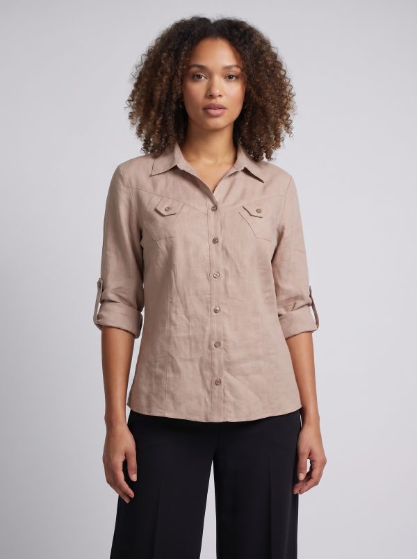 Camasa dama din in Giorgal FACADE este o piesa vestimentara eleganta si confortabila, ideala pentru femeile care isi doresc o tinuta rafinata si versatila. Materialul natural, croiala feminina si designul office casual transforma acest model intr-o alegere excelenta pentru o garderoba moderna.