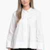 Camasa office din bumbac alb, croi in forma de A si maneca 2/3. Se inchide cu nasturi in partea din fata. Se asorteaza cu o pereche de pantaloni conici. Poate fi accesorizata cu un colier colorat.