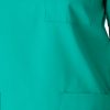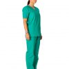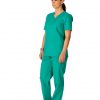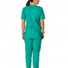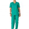 Costum medical format din bluza si pantalon. Bluza are croiala dreapta, decolteu in V, maneca scurta si buzunare aplicate. Pantalonul este lung si are betelie elastica.