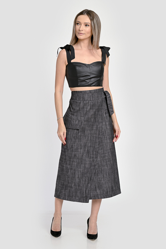 Fusta denim midi gri inchis Giorgal suprapusa Bibi