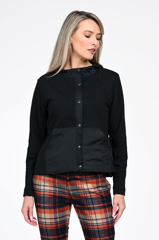 Jacheta dama cu buzunare si gluga – perfecta pentru tinute casual.