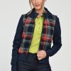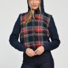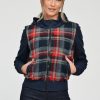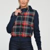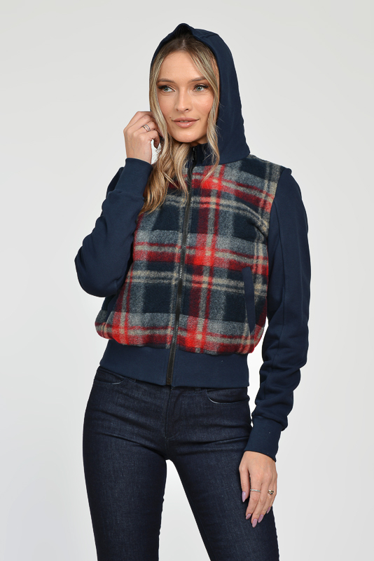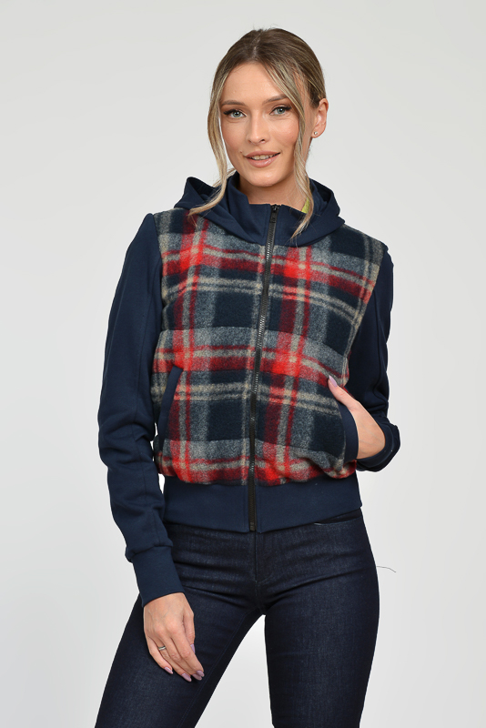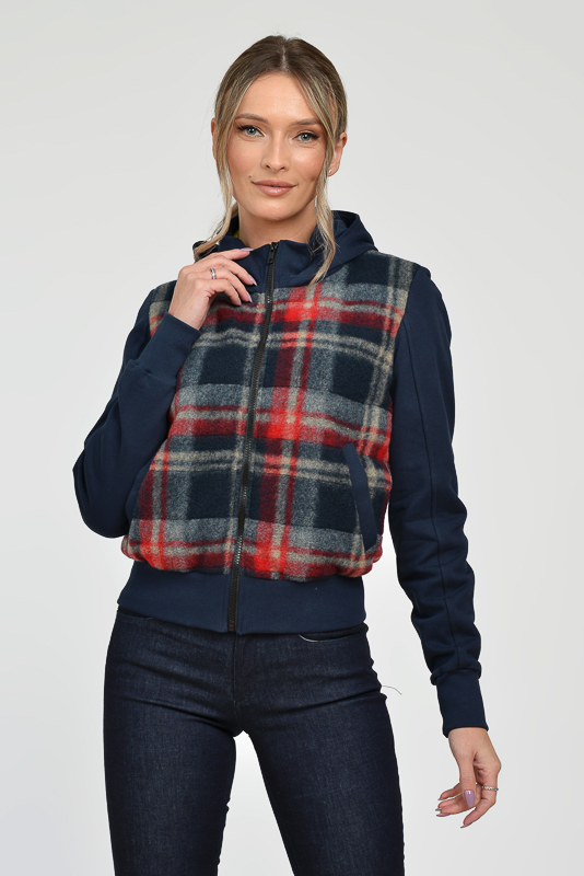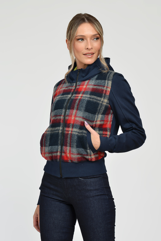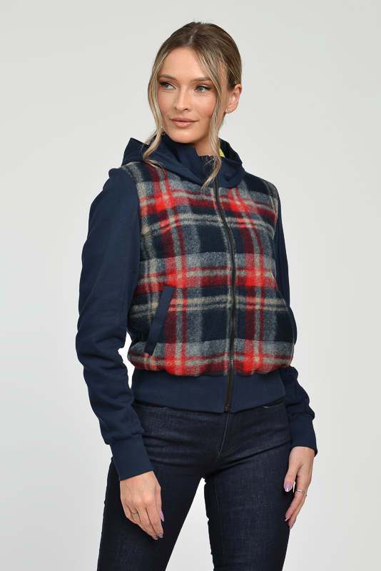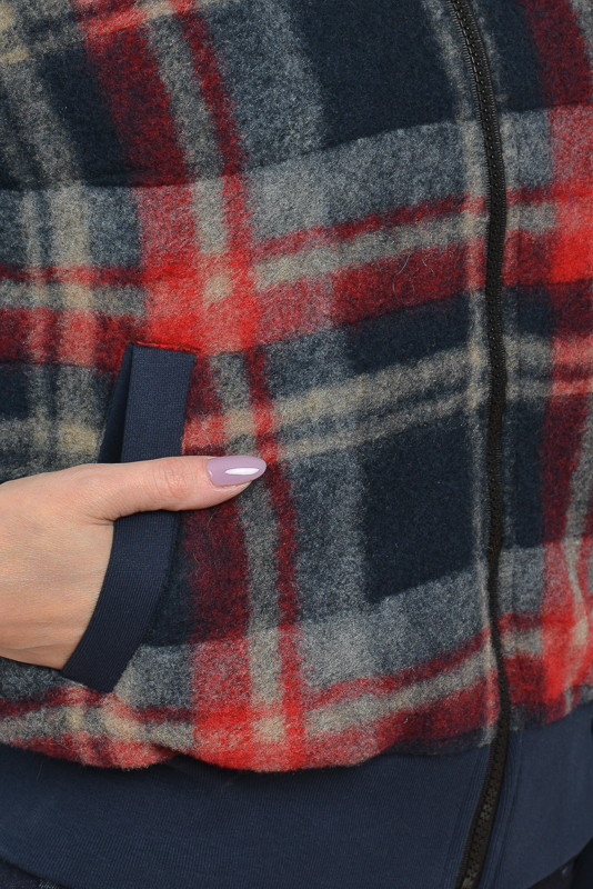 - Imprimeu in carouri pe fata (rosu/albastru/crem)