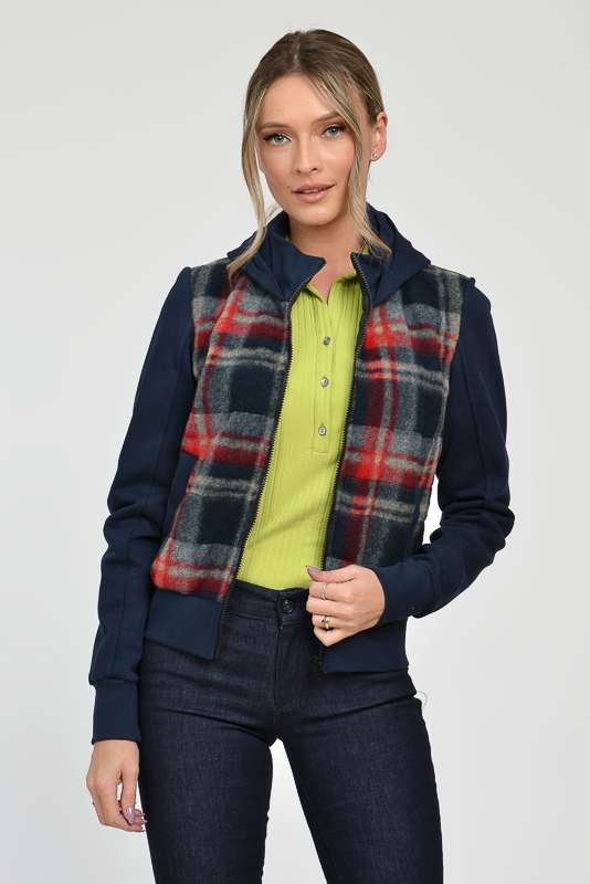 Jacheta dama casual din bumbac calitativ, in nuanta de albastru inchis.