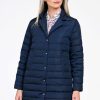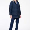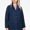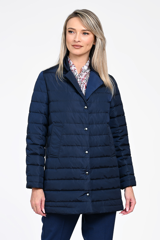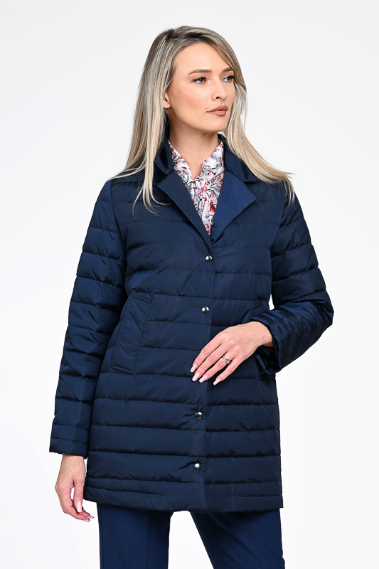 Jacheta dama eleganta, umpluta cu puf, intr-o nuanta placuta de bleumarin. Jacheta de iarna, pentru femei, calduroasa si practica!
