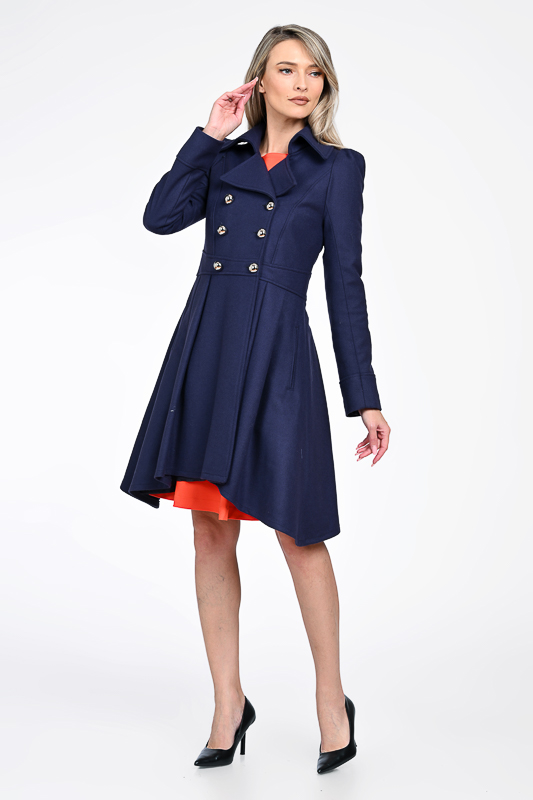 Palton dama elegant din lana bleumarin.