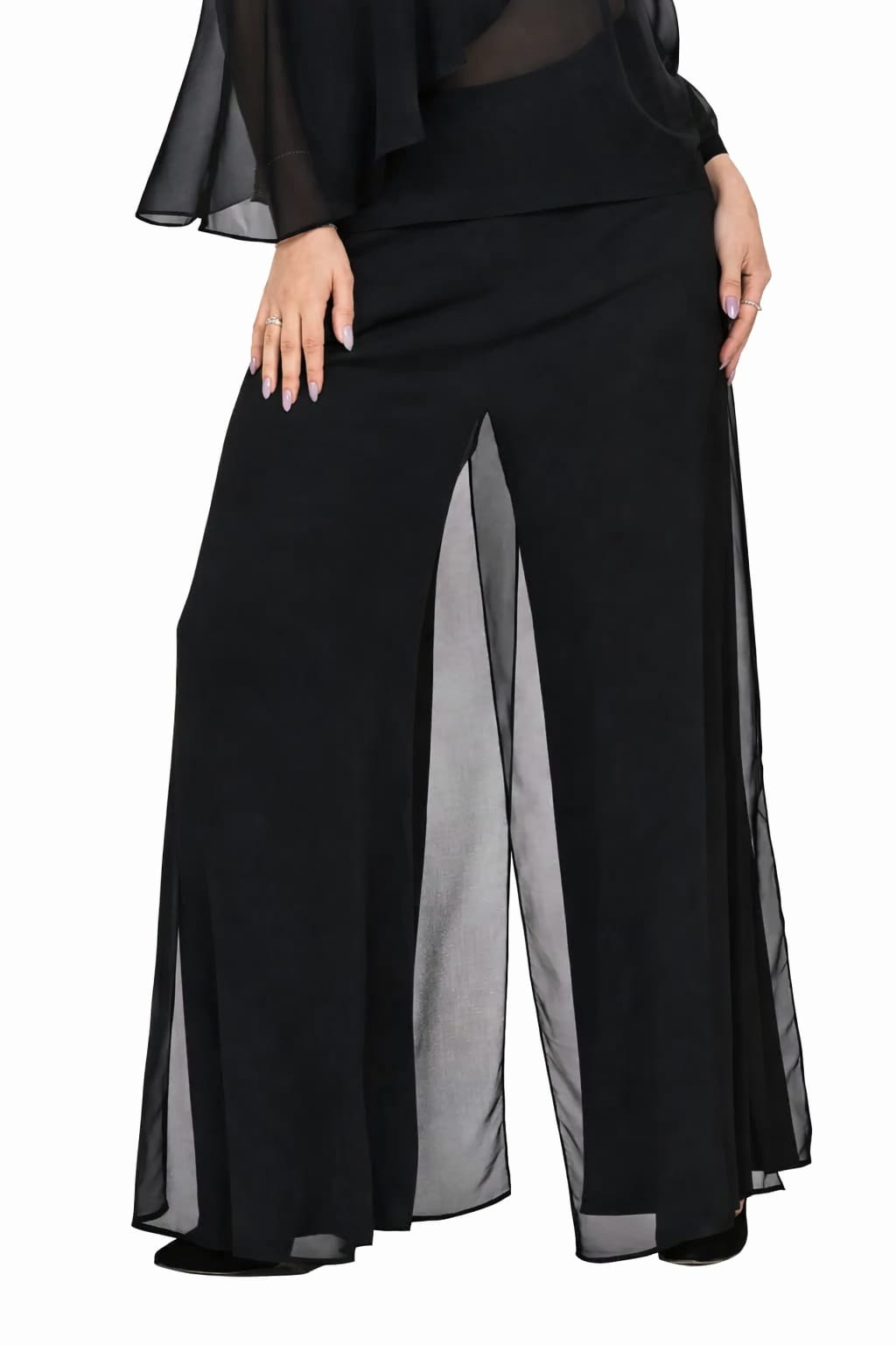 Pantalonii MIRA sunt realizati prin suprapunerea unui voal negru, ceea ce creeaza un efect spectaculos si elegant! In acelasi timp, designul pantalonilor este conceput astfel incat acestia sa nu fie transparenti, pastrand un aer elegant.