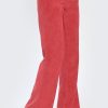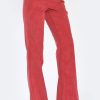 Pantaloni dama evazati din velur rosu. Pantaloni potriviti pentru tinute de zi casual/elegante.