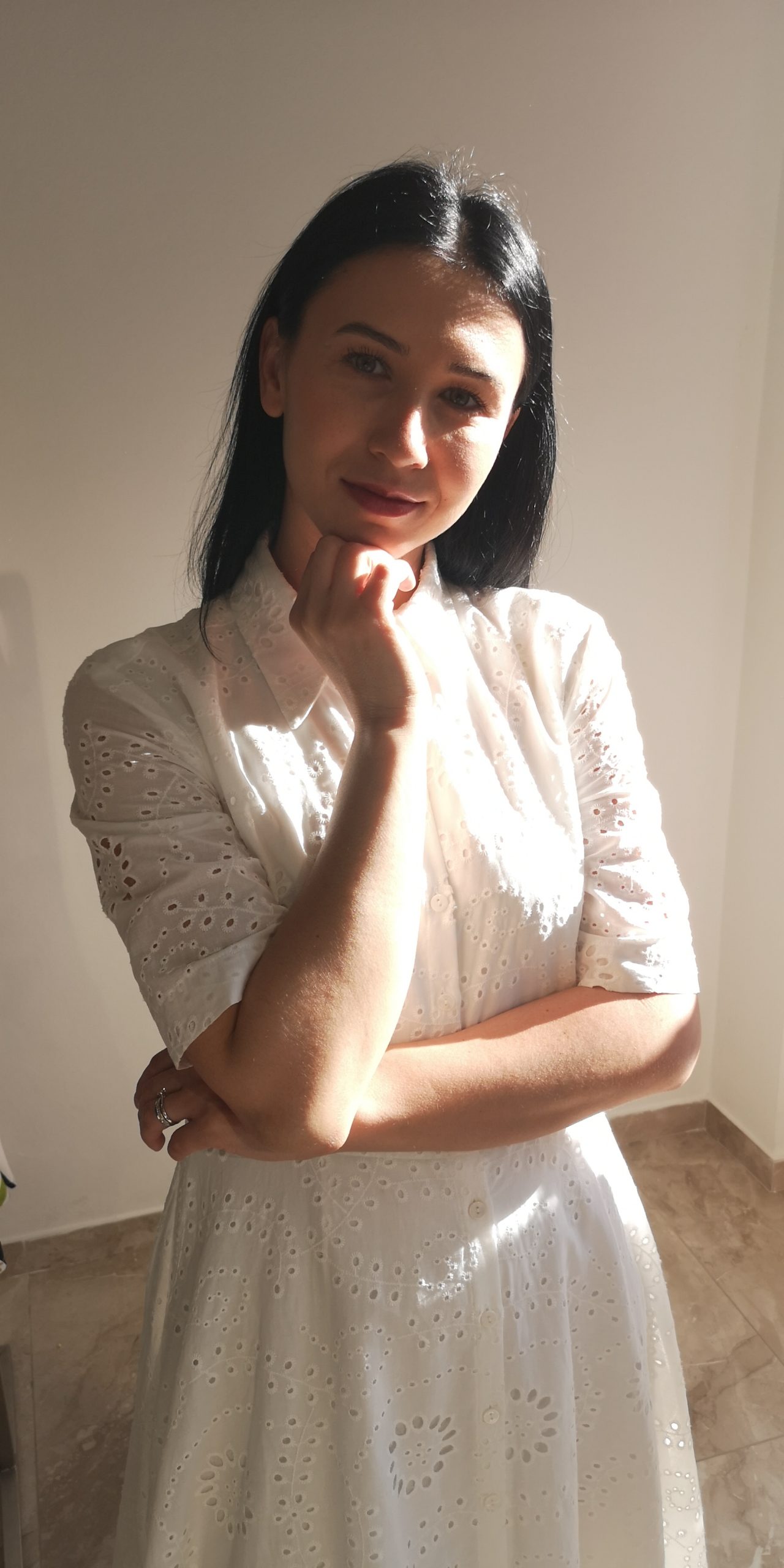 Rochie din bumbac brodat, alba.