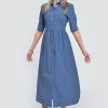 Rochie lunga de bumbac, Giorgal, albastra Stella