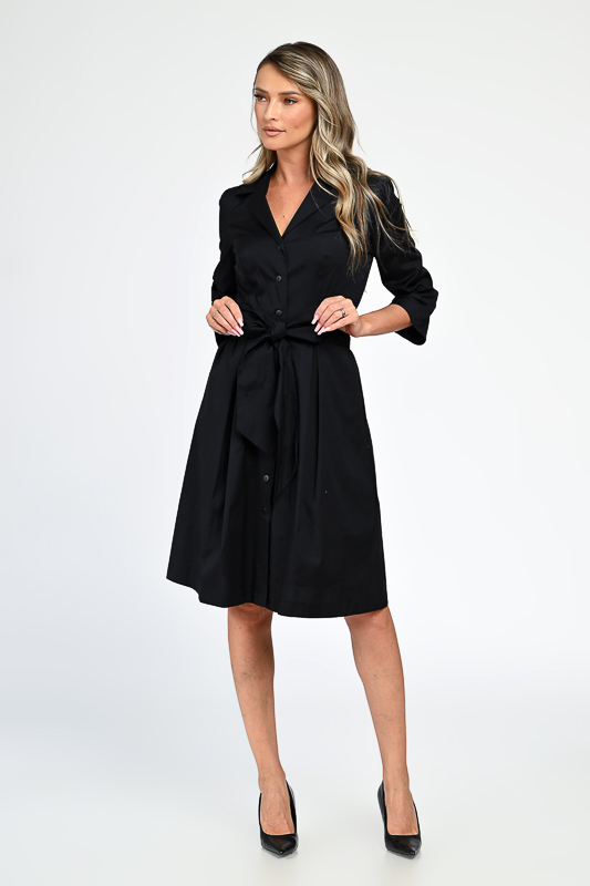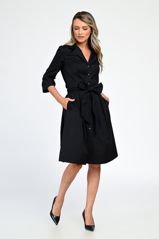 Rochie neagra midi, din bumbac.