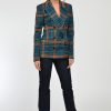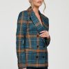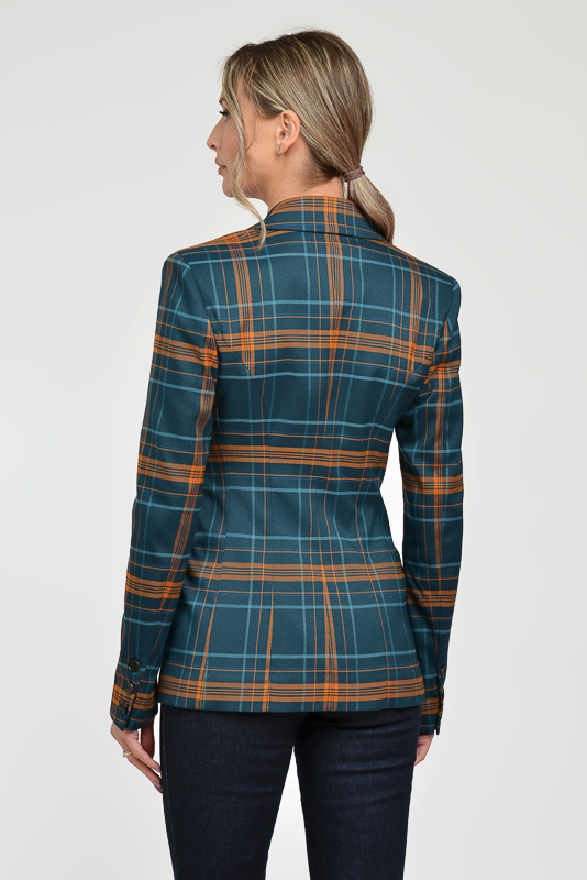 Sacou dama elegant din tesatura bleumarin cu aspect satinat si imprimeu floral.