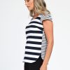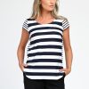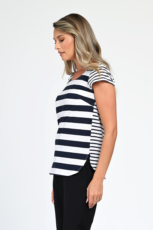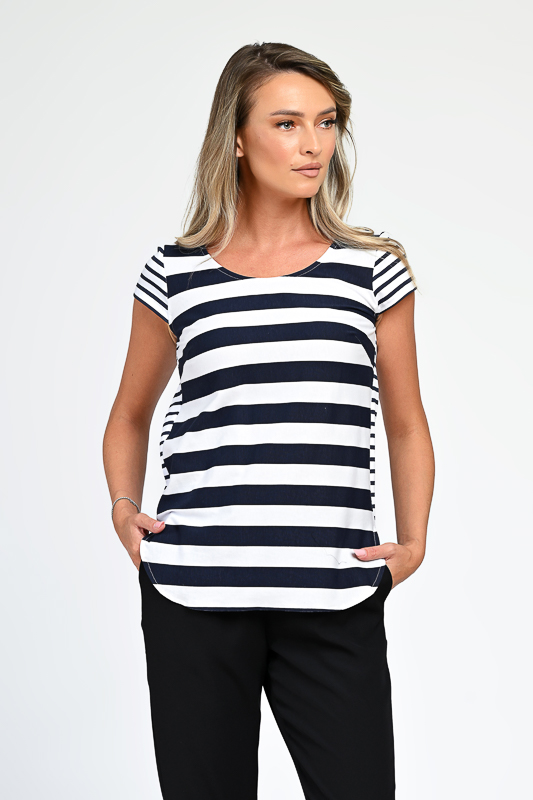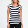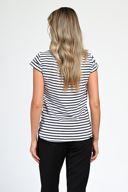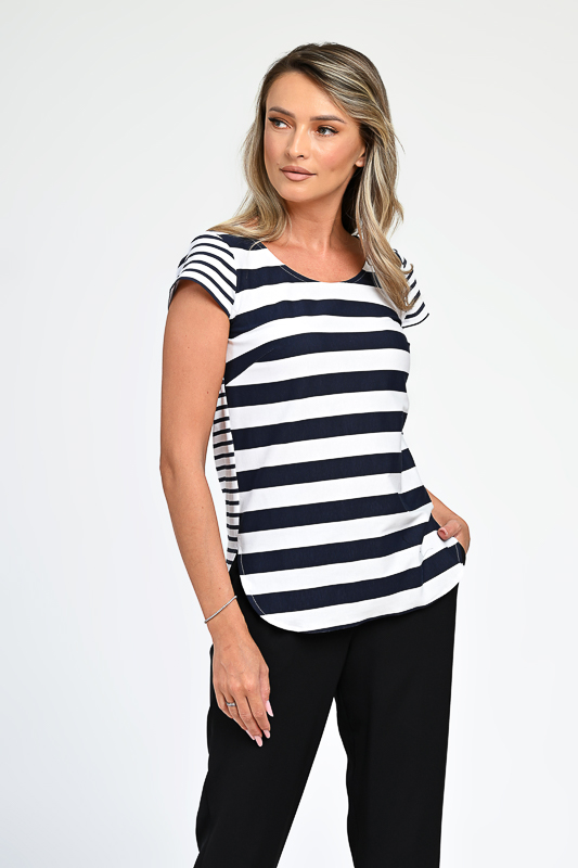 Tricou dama bumbac in dungi Giorgal alb/albastru TORINO